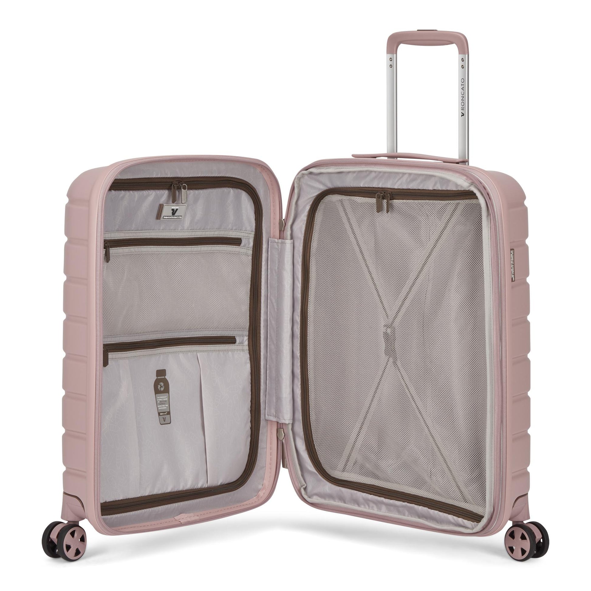 Bagaglio a mano Roncato modello con espandibilità, dotato di 4 ruote removibili con un click