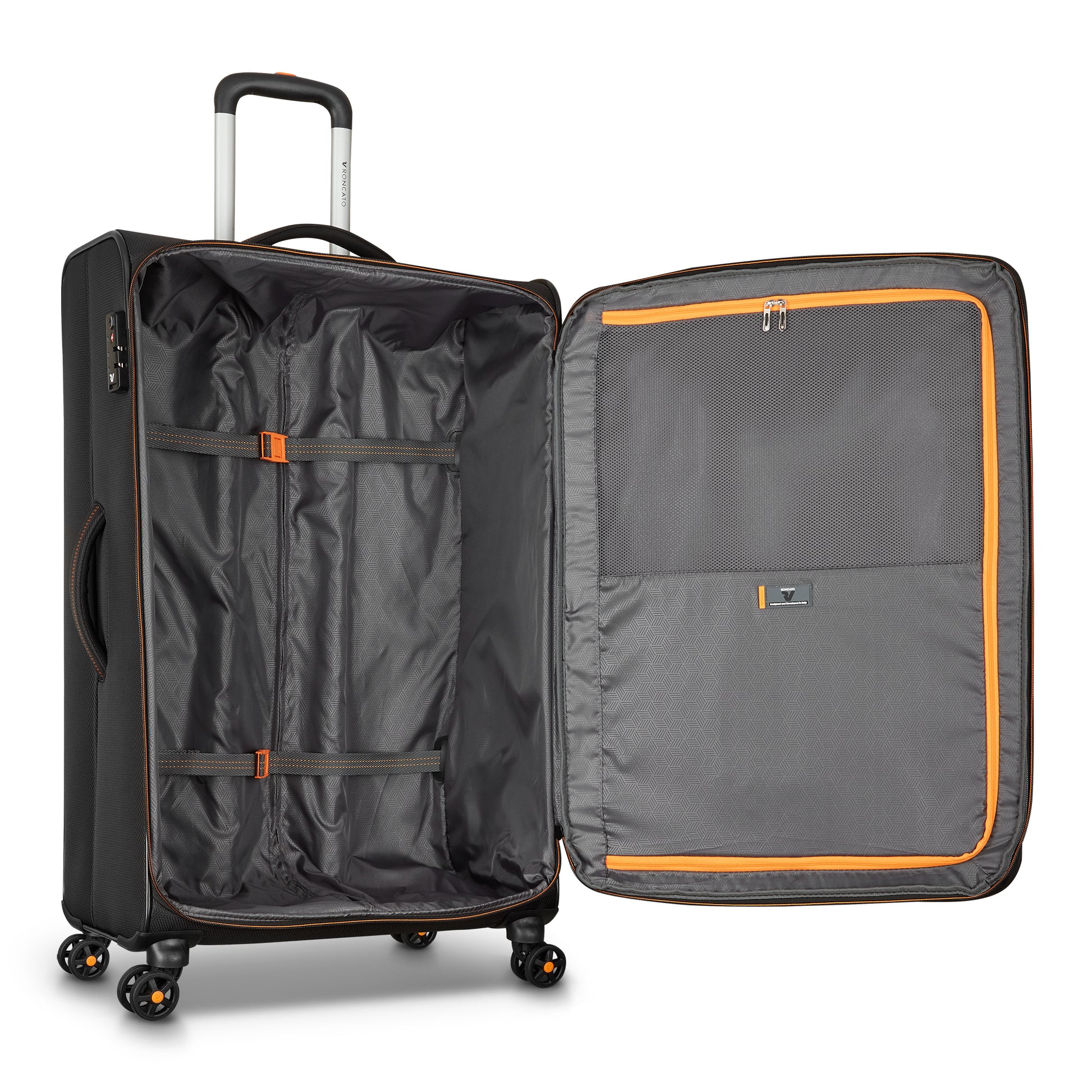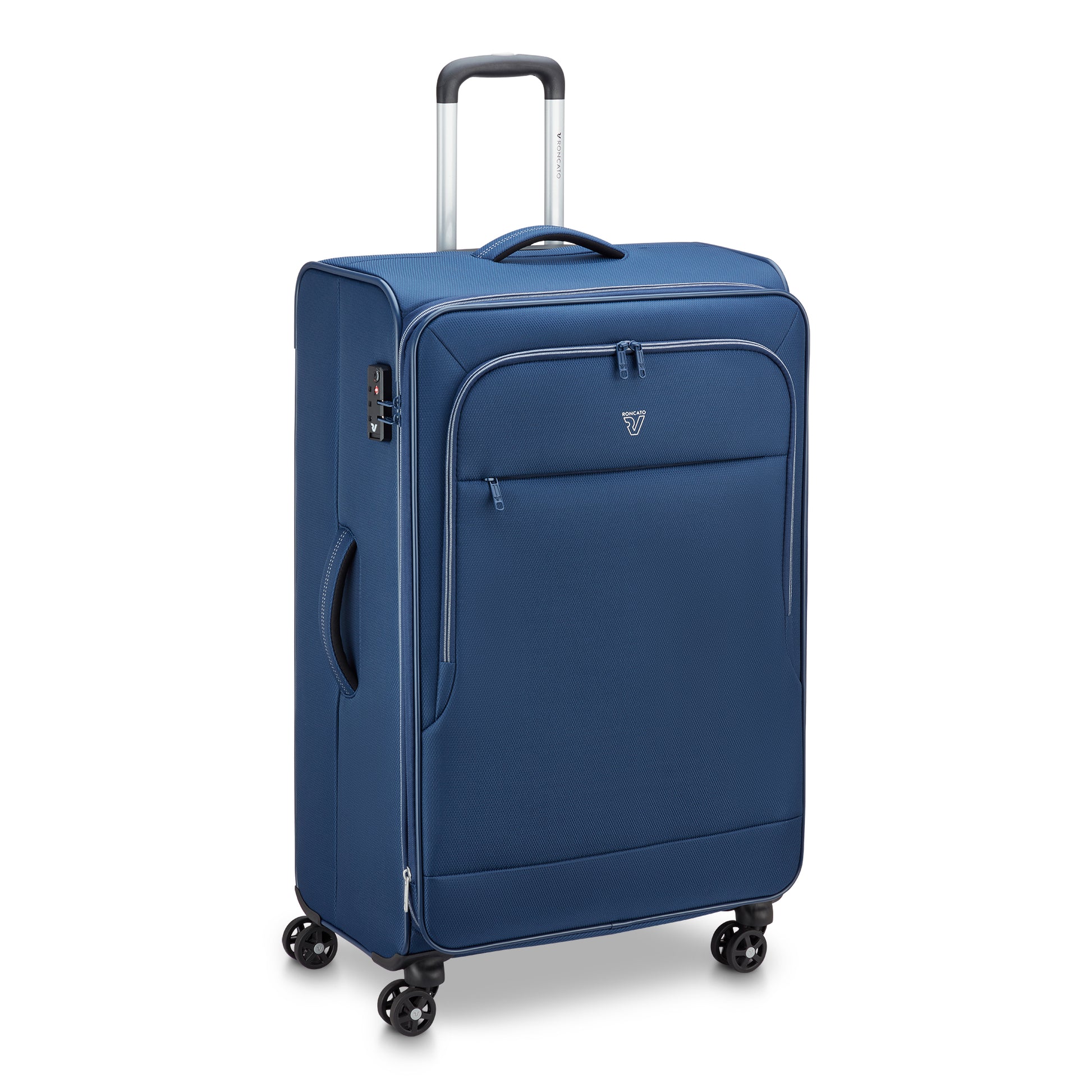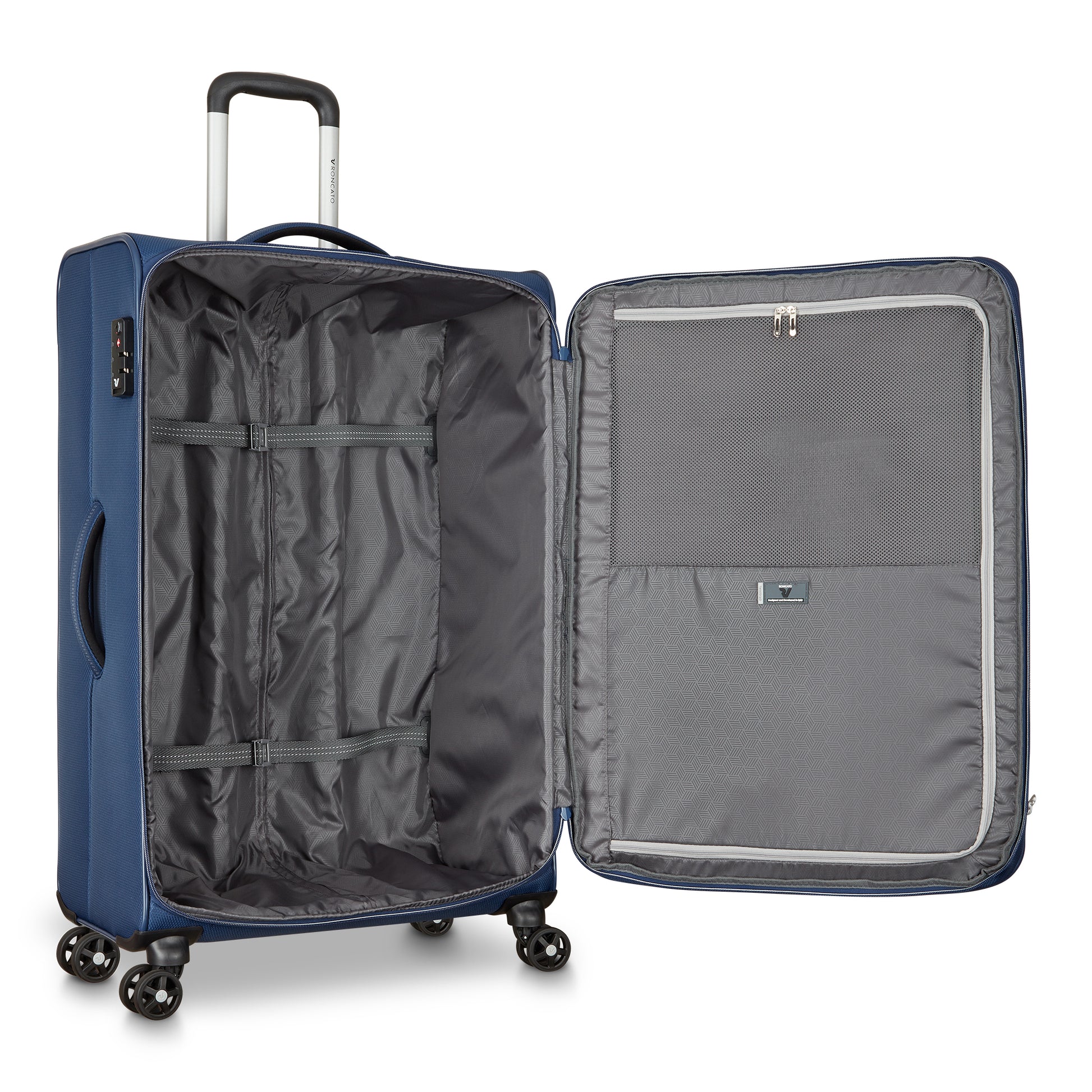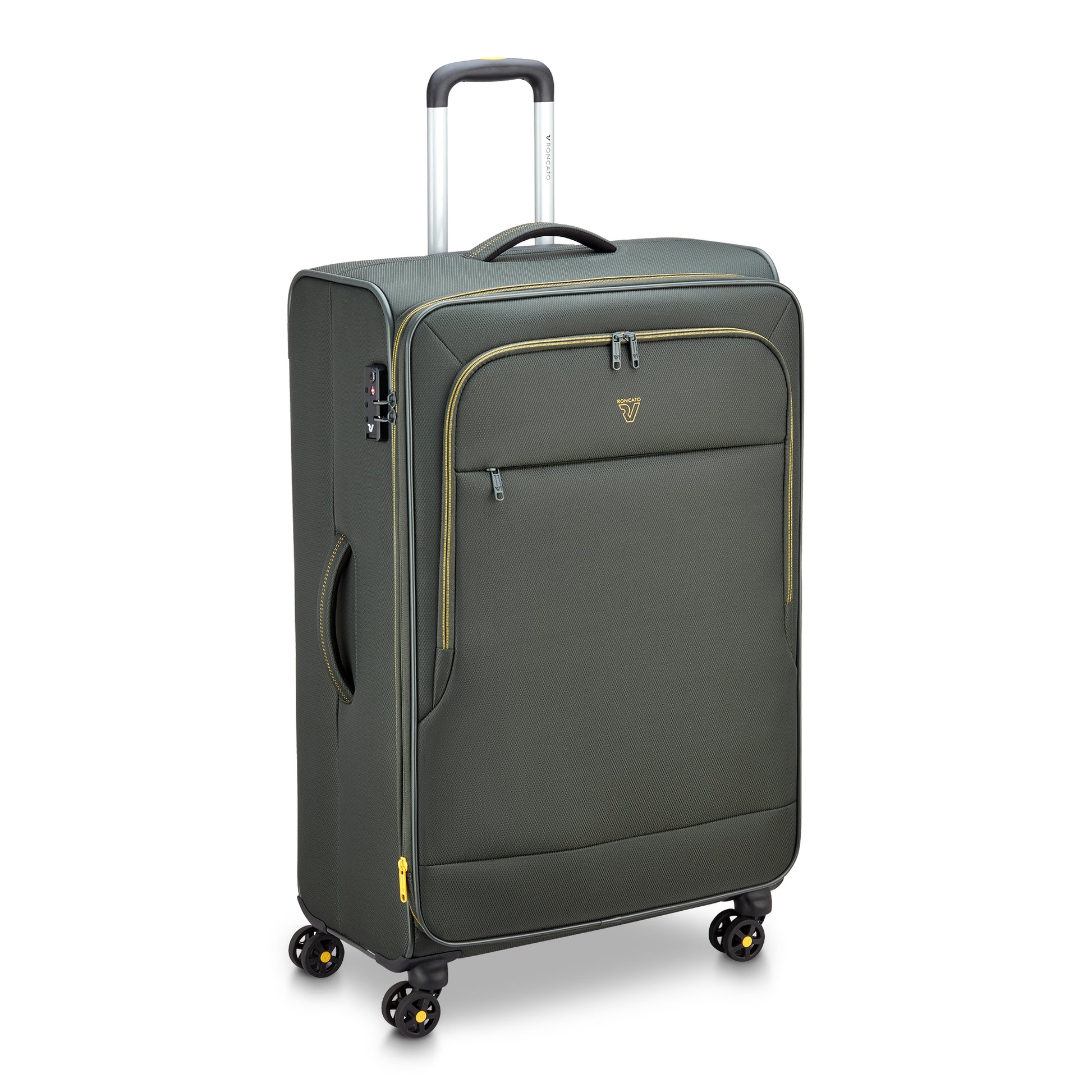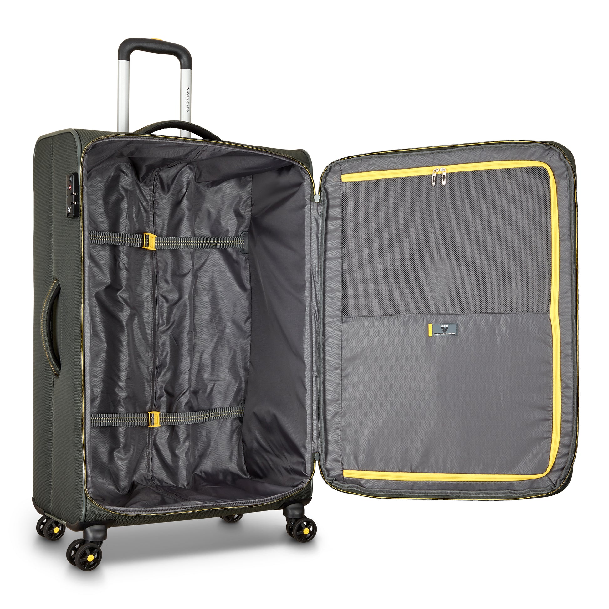 Bagaglio da stiva Roncato modello di grandi dimensioni con quattro ruote, dotato di zip per espandere il modello
